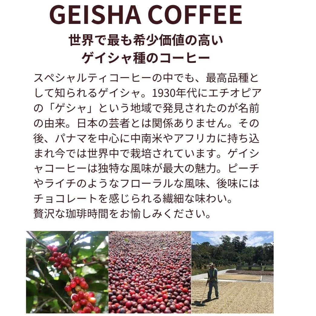 ゲイシャコーヒーはゲイシャ種に属する希少な品種で、栽培が難しく収穫量が少ない非常に価値の高いコーヒ一です。スペシャルティコーヒーの中でも、トップ・オブ・トップの超希少なコーヒー豆です。